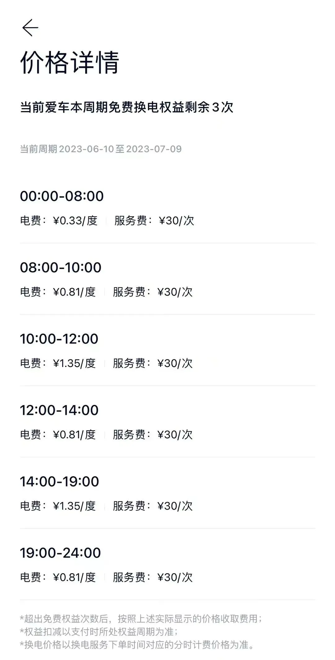 以蔚来的换电服务为例,蔚来汽车 6 月 12 日以后免费换电将不再作为基础用车权益,用户可选择单次付费进行换电, 除了正常的电费以外,还需支付 30 元/次的服务费。