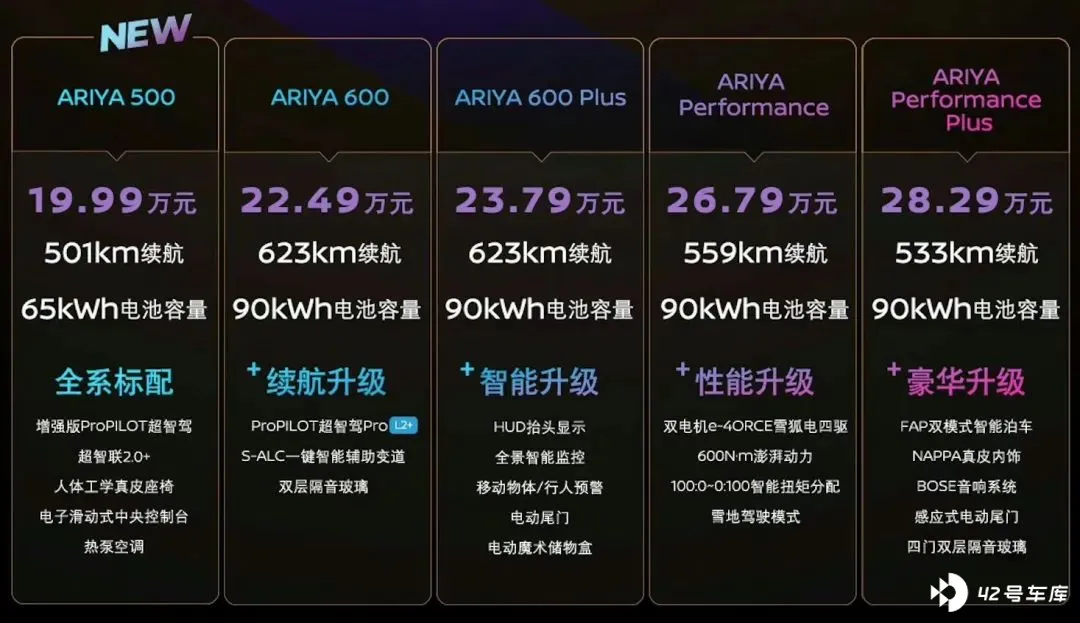仍然是东风日产,7 月 20 日新款 ARIYA 艾睿雅车型上市,官方指导价为 19.99 万 -28.29 万元, 起售价相比老款降低了 5.99 万元 。