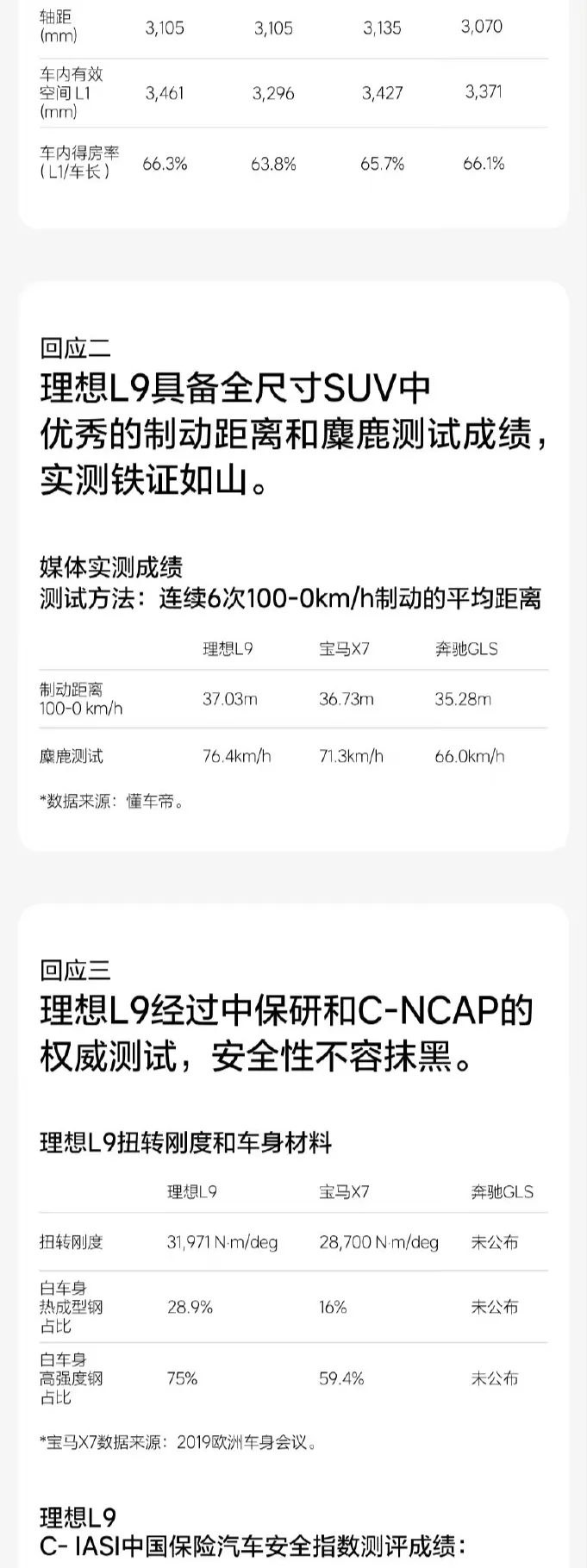 理想汽车对之前对 L9 车型的十条负面传言做出了正面回应,并逐一列出数据,解释原理,为每一条传言提供背景知识的解释。