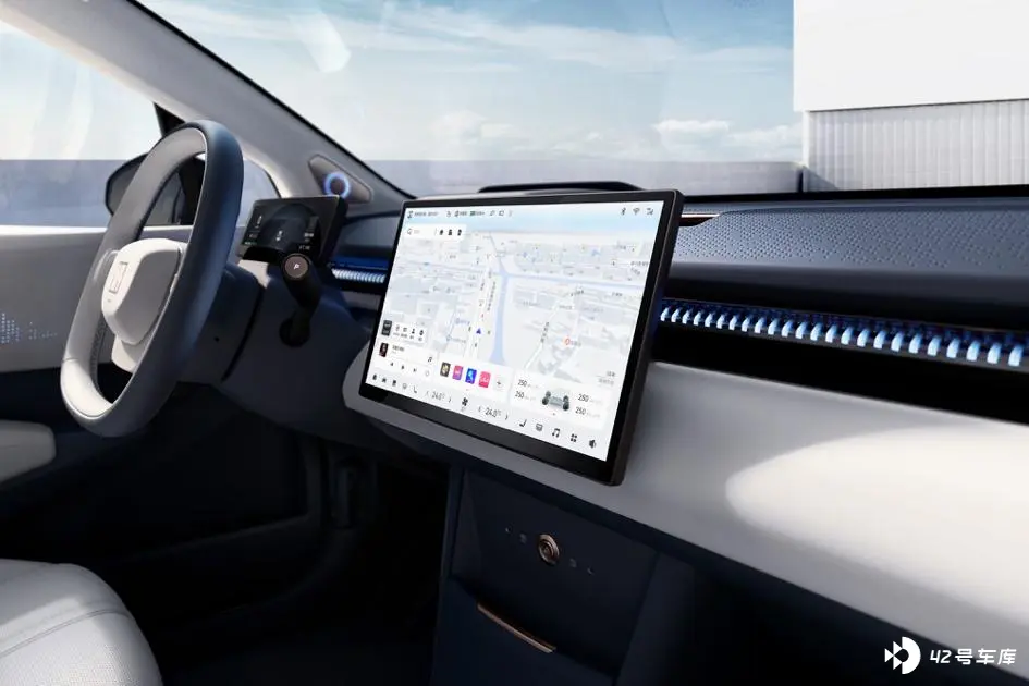 新车对 14.6 英寸的智慧屏采用滑移设计,通过手势滑移,可以顺畅地从中间位置移动到副驾位置,同时满足主驾功能需求和副驾娱乐需求。此外还可实现信息分享,让交流更便利。
