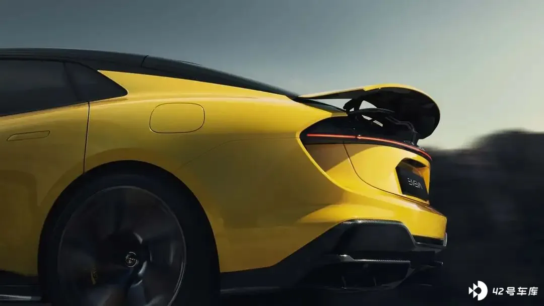 车身尾部带有主动式升降尾翼,尾灯采用了贯穿式风格,辨识度很高。左右两侧带有空气分离器设计,后杠带有扩散器效果,采用了大量碳纤维材质。