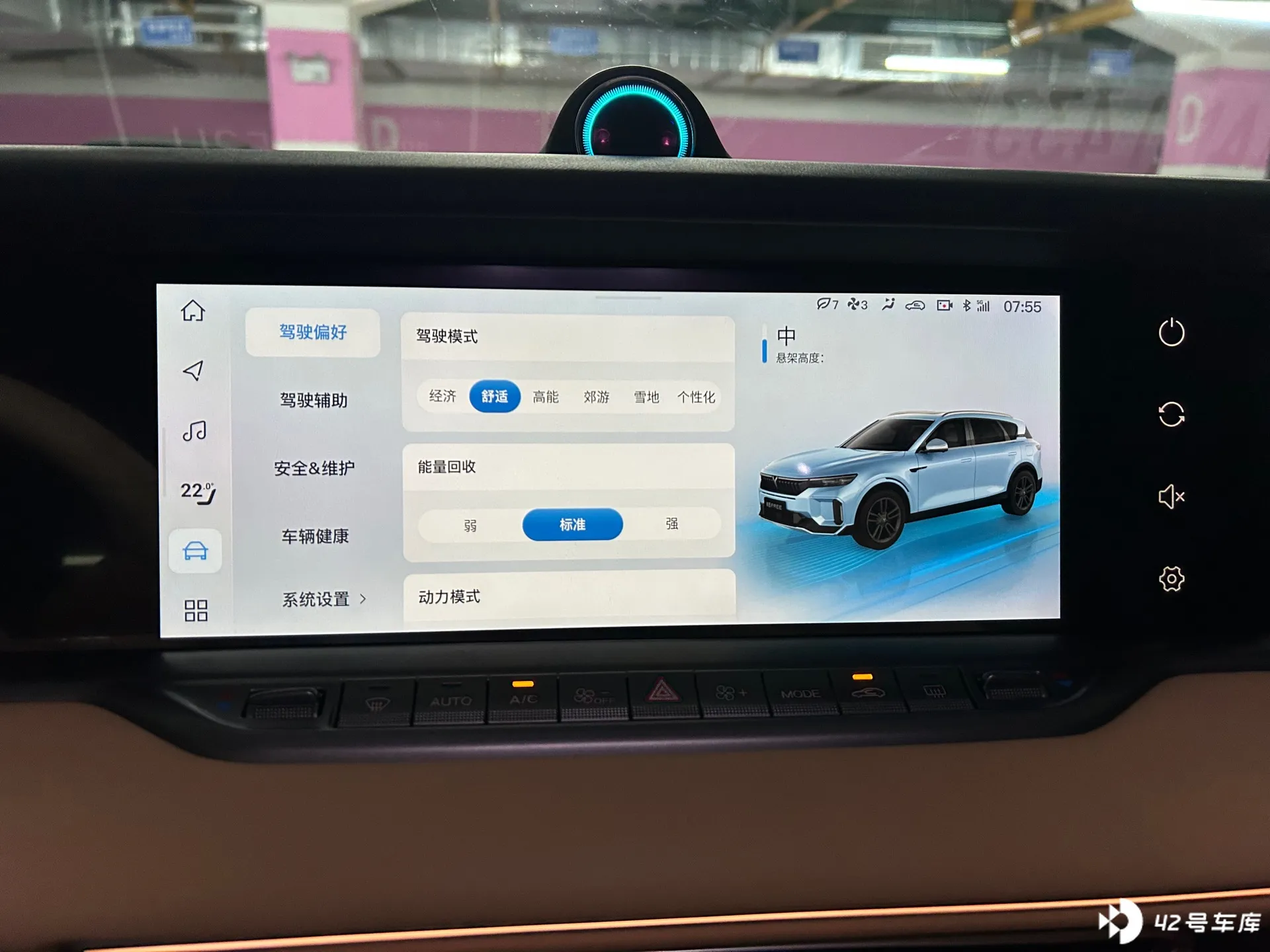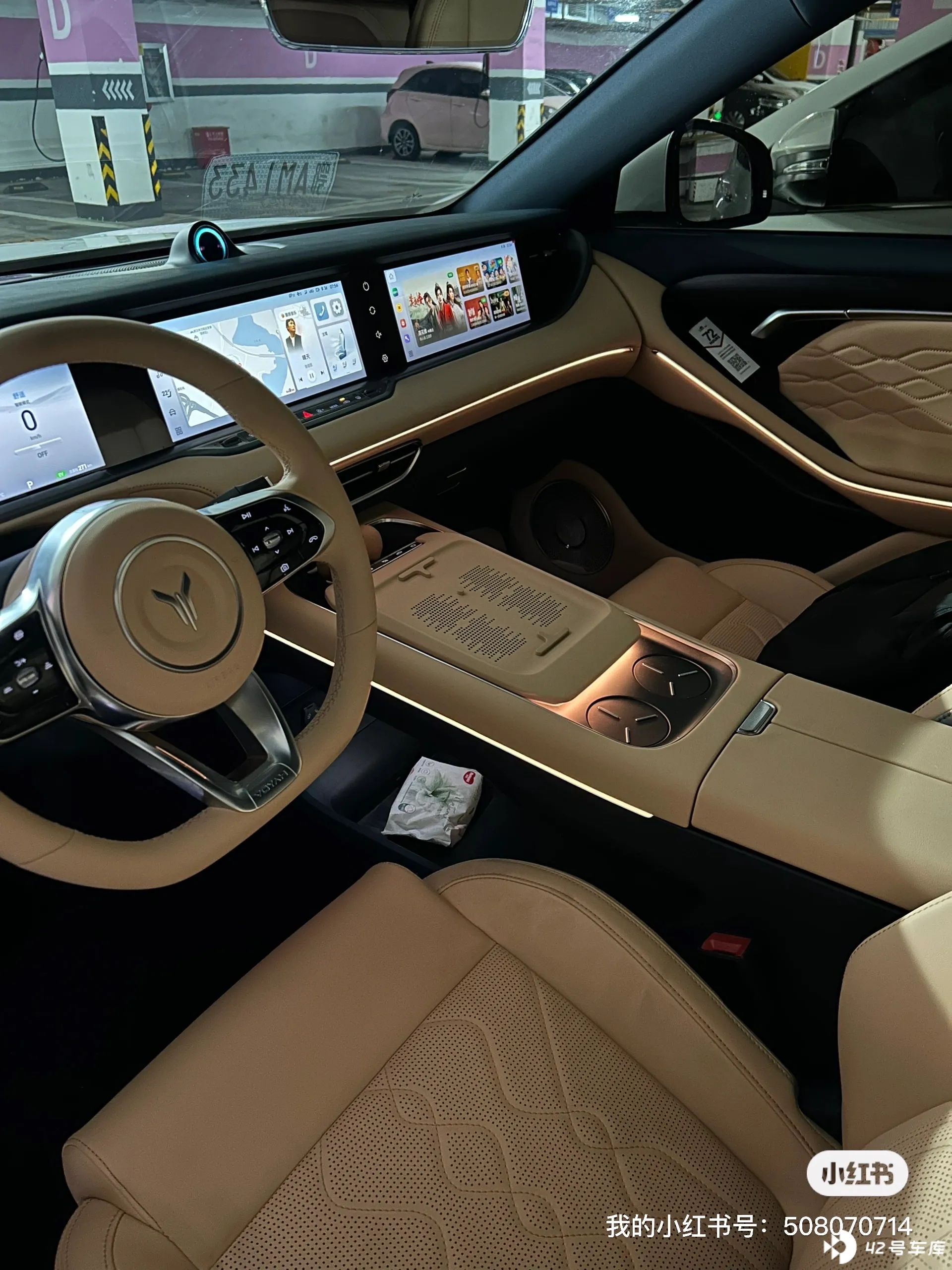 双电机、4.8s加速、全铝底盘、空气悬挂,配置上来说基本到顶了,实际驾驶感受也是一样,加速很猛,操控性更不用说。切换高能模式后,三联屏自动降低,有一种进入战斗模式的气氛,一脚电门下去秒杀全马路,车速达到80后空气悬挂也会自动调整到最低高度,哈哈哈,一个字“爽”。