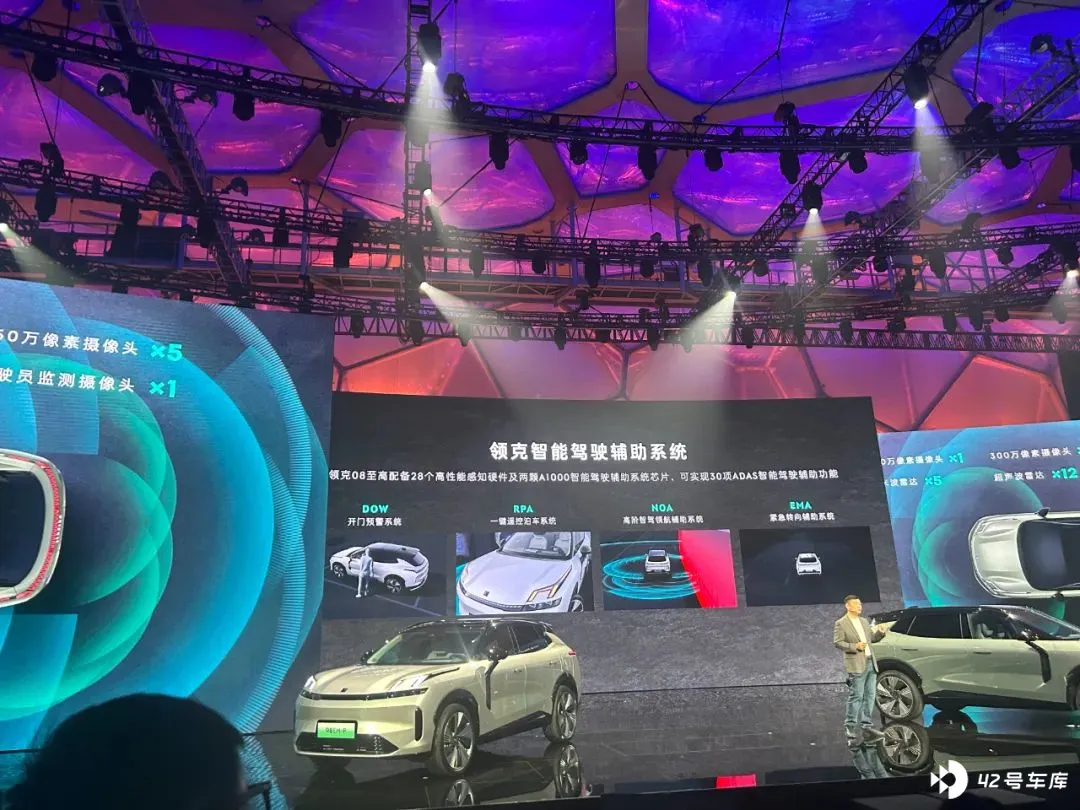 除此之外,领克 08 还搭载了高速 NOA 智能驾驶(部分版本),但与极氪、极星绑定 Mobileye 方案不同的是,领克选择本土芯片厂商黑芝麻的 A1000 芯片和行泊一体方案。