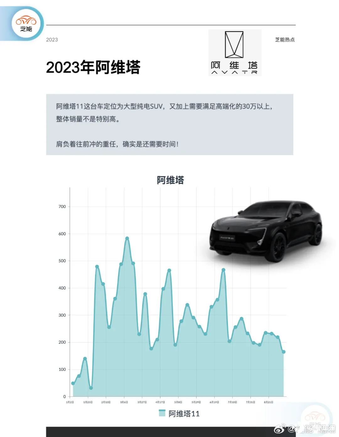 阿维塔 11 这台车定位为大型纯电 SUV,又加上需要满足 30 万以上车型的高端化需求, 销量表现一般 。