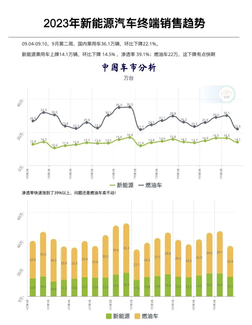🔋 国内新能源乘用车销量 14.1 万辆,环比 -14.5% ,渗透率 39.1% ,创新高