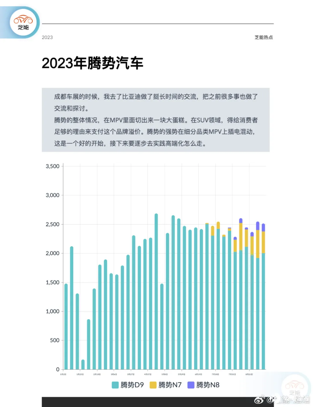 腾势在 MPV 细分市场中获得了良好的市场份额,SUV 领域还需要为其品牌提供更多的价值。 腾势在 MPV 混动领域的表现值得称赞 ,期待其在高端市场的进一步突破。