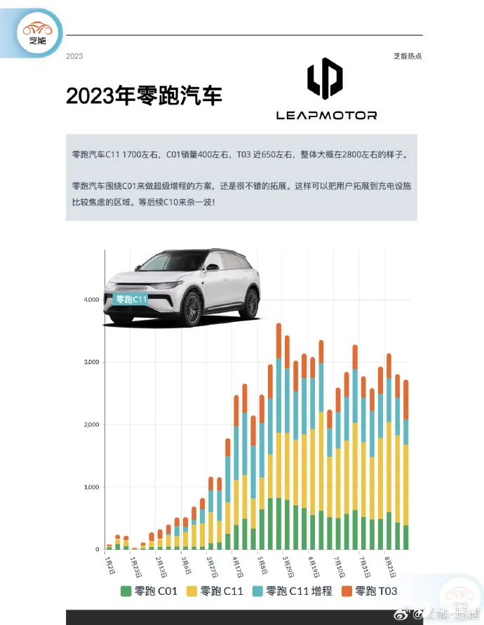 总销量约 2800 辆 ,其中 C11 为主力车型,C11 1700 左右;C01 销量 400 左右;T03 近 650。
