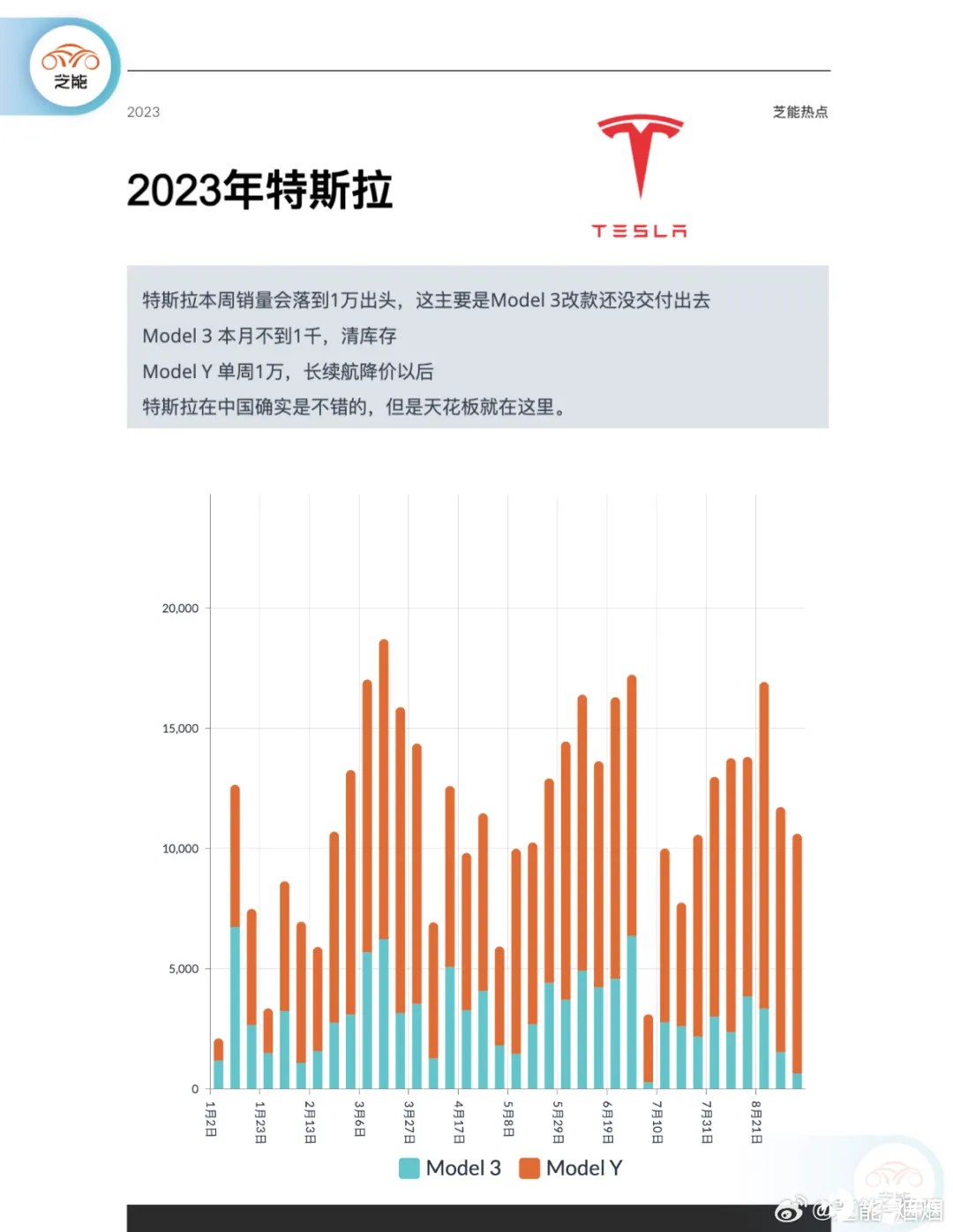 特斯拉本周销量预计为 1 万左右 ,主要因为 Model 3 的新款尚未交付。Model 3 本月销量不足 1000,而 Model Y 单周销量达到 1 万。特斯拉在中国表现强劲,但其市场容量似乎有所限制。