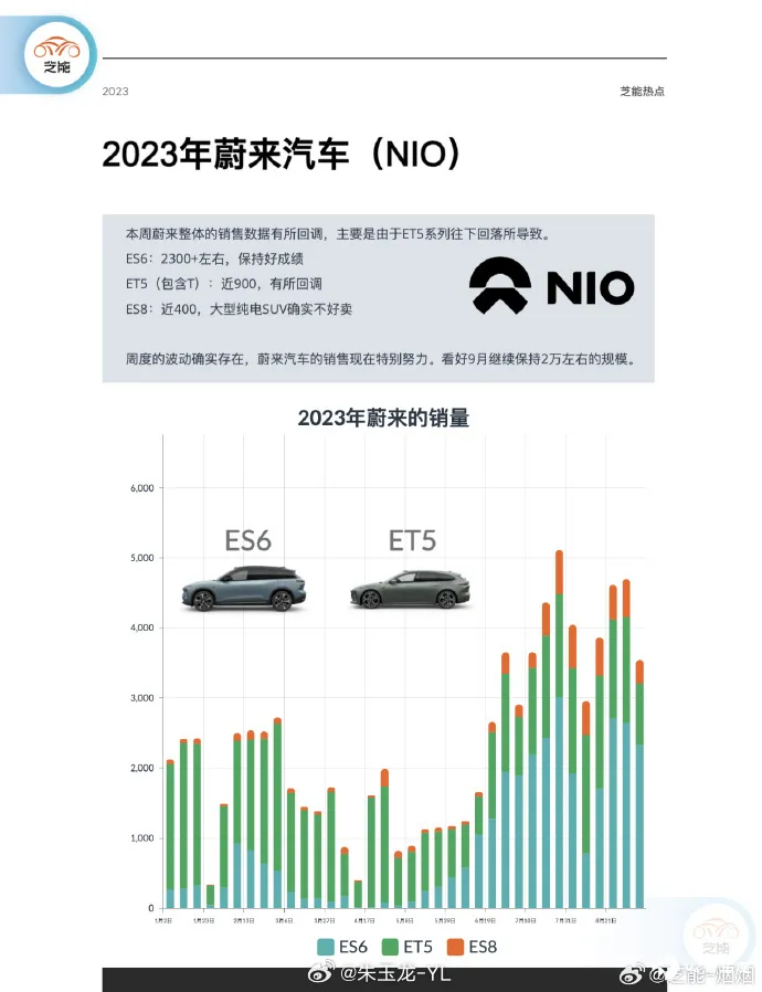 蔚来本周的销售数据稍有下降 ,主要受到 ET5 系列的回调影响,预期 9 月销量稳定在 2 万左右。