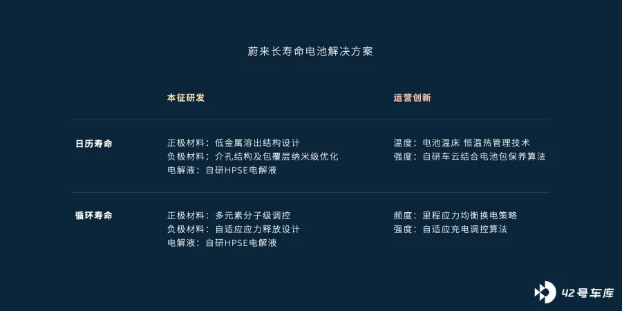 材料研发创新:通过对电池正负极材料的调控,蔚来团队提高了电芯的结构稳定性,降低了过渡金属溶出率,从而显著提升了电池的循环和日历寿命。
