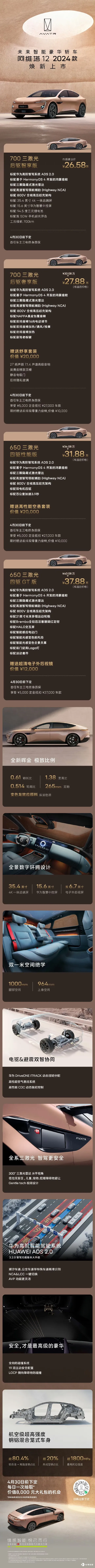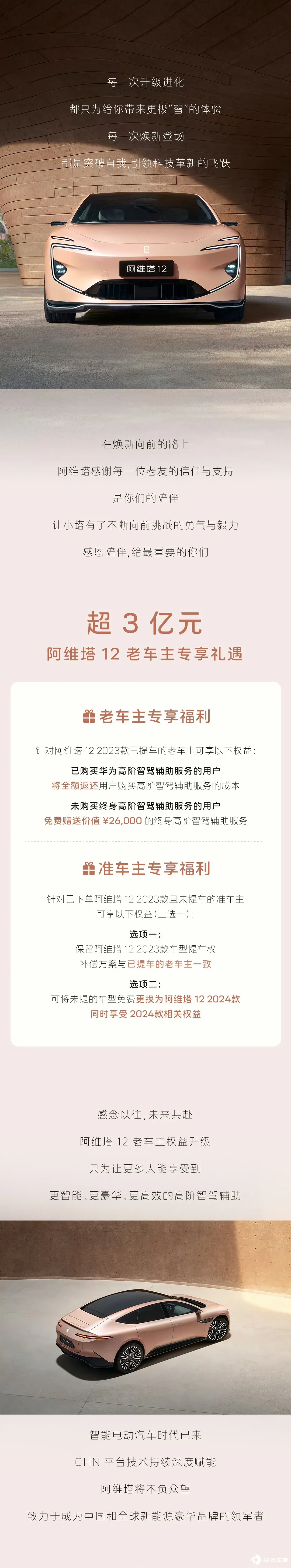 阿维塔12 2024款的发布,无疑是近期豪华汽车市场中的一大亮点。这款车不仅在性价比上做到了行业内领先,更以其豪华的配置和设计,赢得了广大消费者的青睐。对于老车主来说,阿维塔汽车的这一举措更是充满了诚意。对于那些已经购买了华为高阶智能驾驶系统的老车主,阿维塔汽车提出了直接退现金的优惠政策。这不仅体现了品牌对老客户的尊重和回馈,更在实际行动上减轻了老车主的经济负担,增加了客户的忠诚度和品牌的好感度。