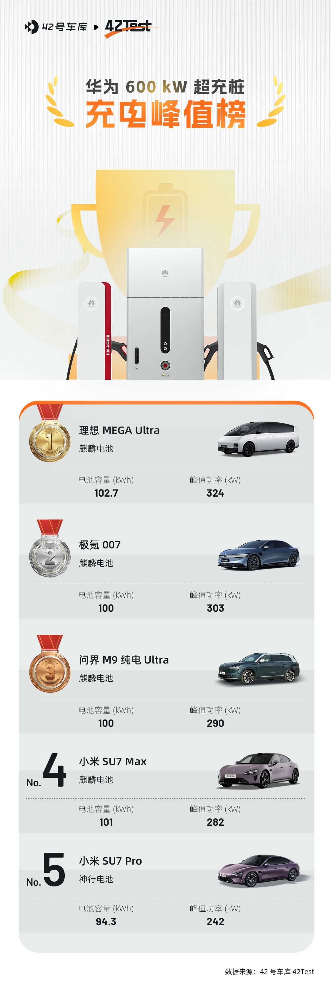 充电环节,虽然小米 SU7 Pro 只是 400 V 的平台,但是官方充电峰值功率并不低,因此我们还是将它带到了在华为液冷 600 kW 桩上来测试充电。