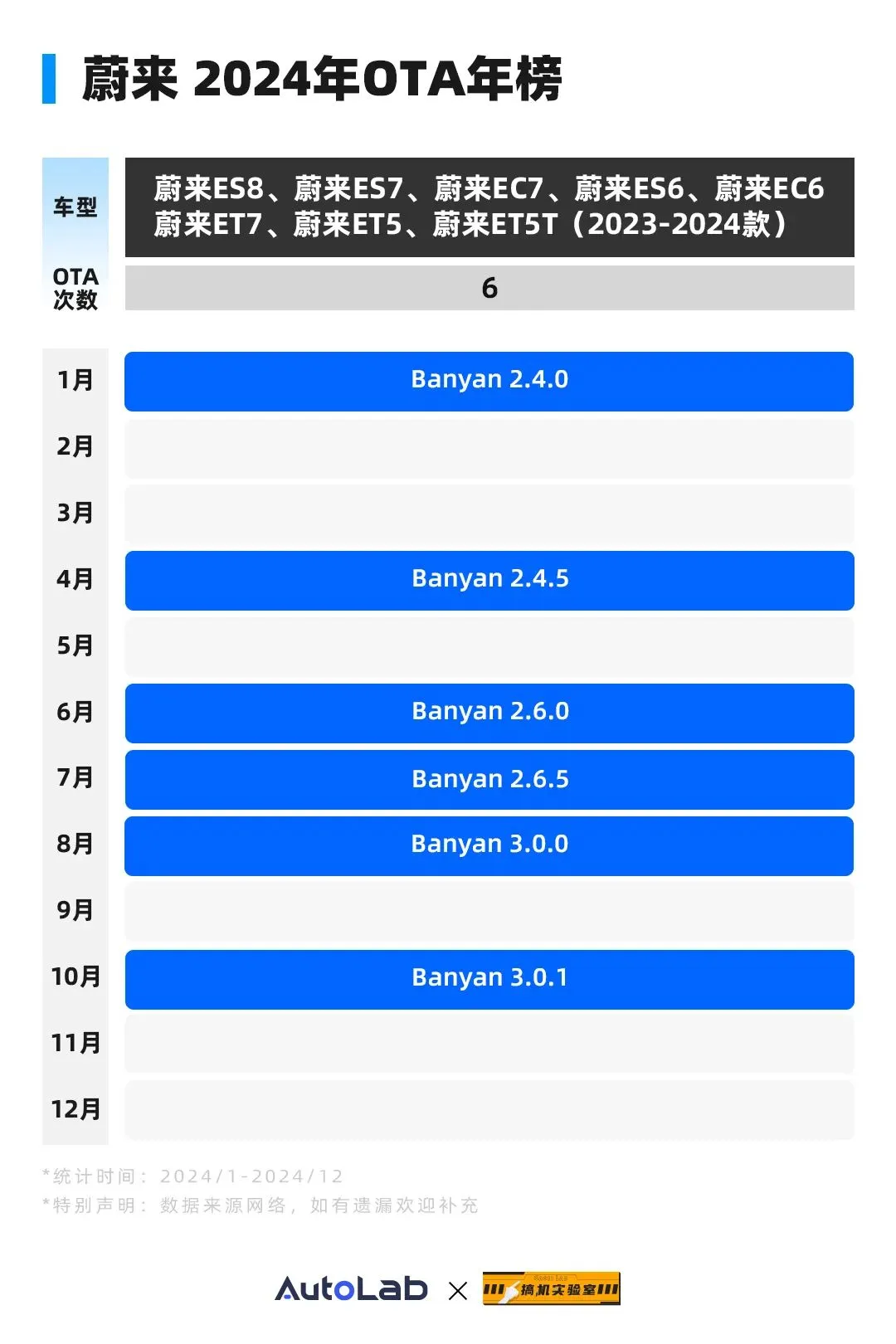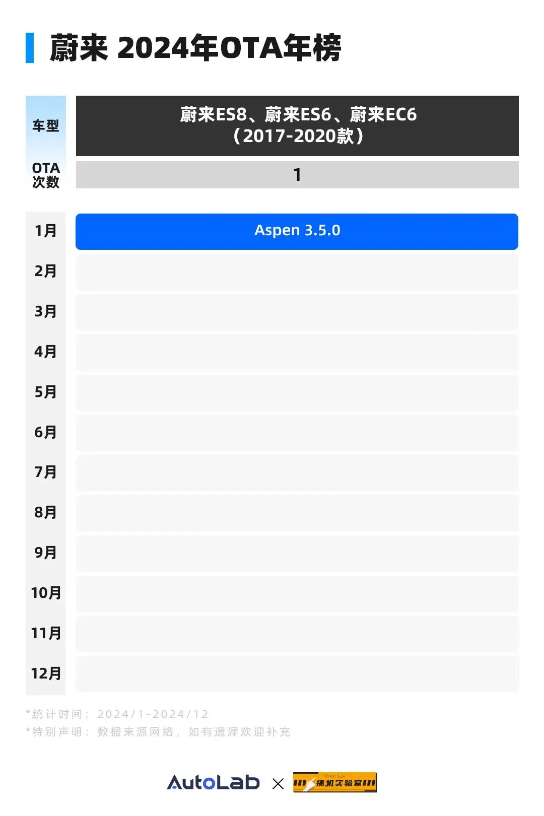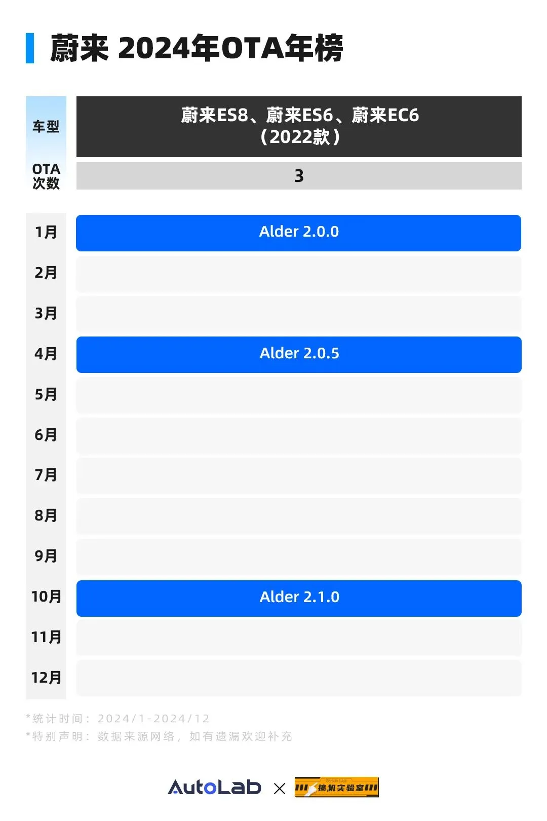 如果从 OTA 频率来看,蔚来在 2024 年的表现可谓相当佛系。