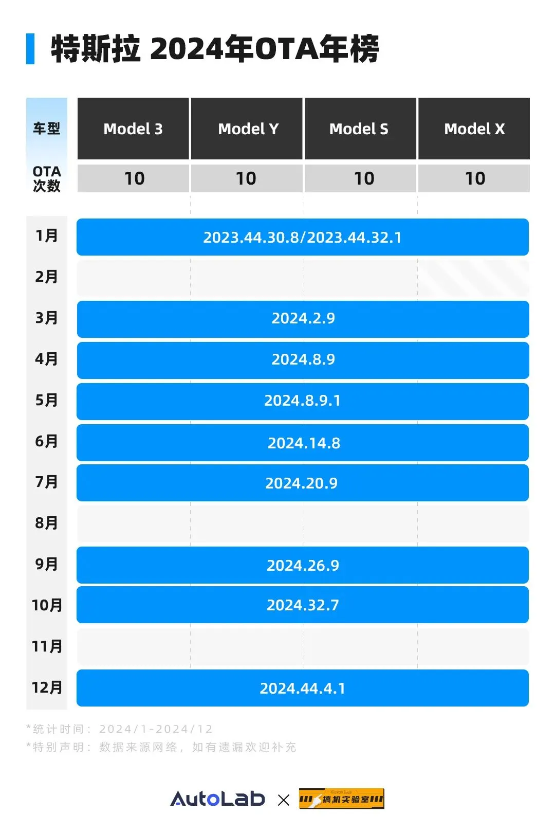 在过去的 2024 年里,《搞机试验室》通过 OTA 月报的形式,与大家分享了每个月收到 OTA 更新的车型。