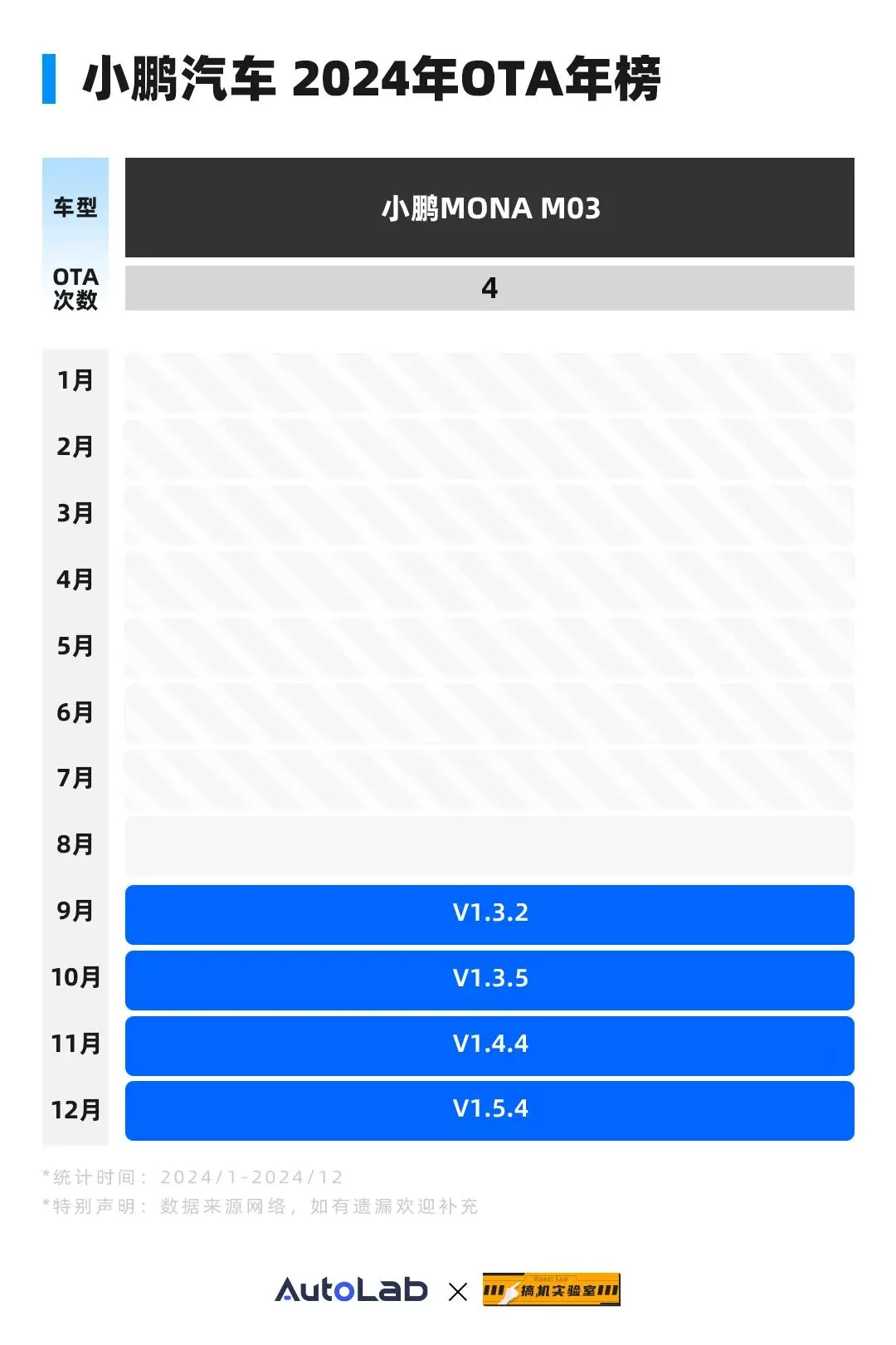 作为该系列的首款车型,小鹏 MONA M03 从上市至今,每个月都有一次 OTA,希望可以在 2025 年继续保持。