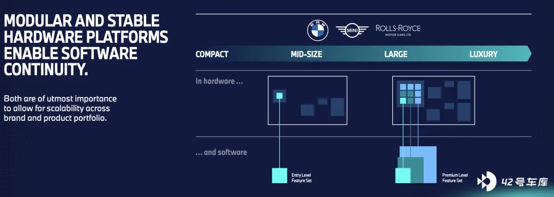 宝马全新电子电气架构是其向软件定义汽车转型的关键一步, 覆盖燃油、混动和纯电全动力系统,以及从紧凑型到豪华型的全细分车型。与特斯拉的垂直整合模式不同,宝马采用硬件标准化与软件模块化并行的策略。