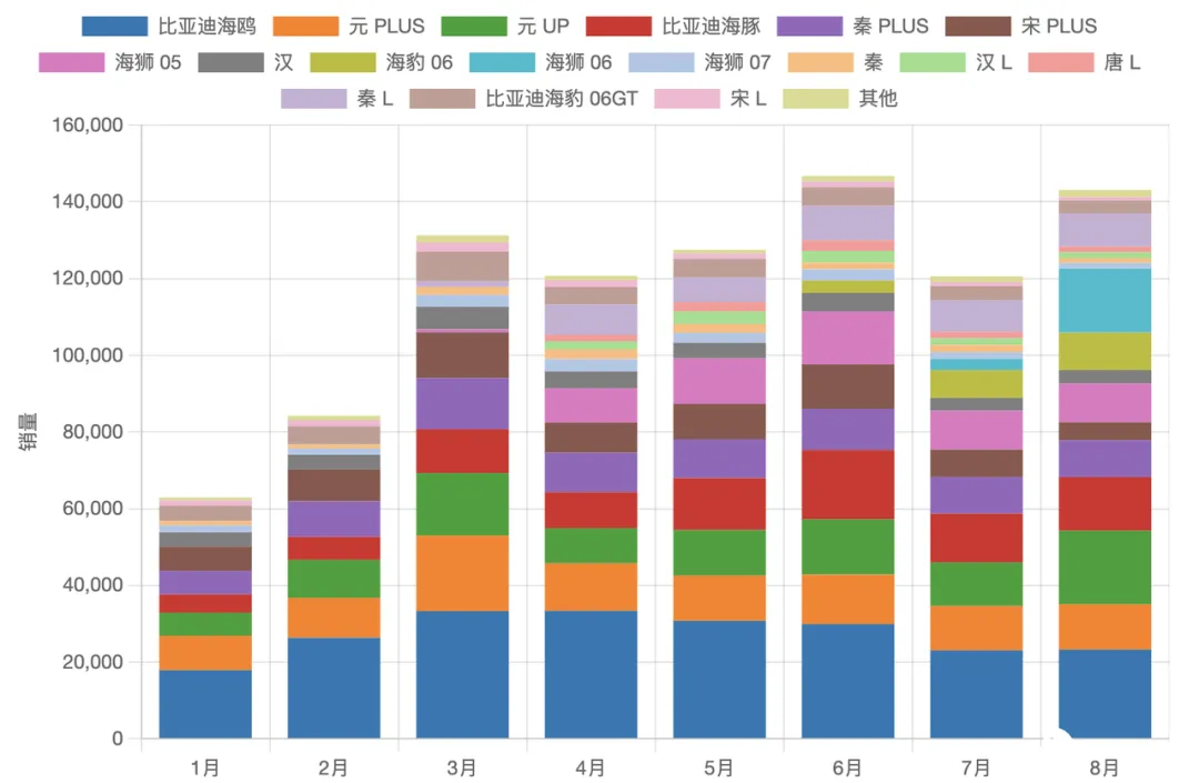 ◎ 海狮 06 自 6 月上市以来增长迅猛,8 月达到 16661 辆。