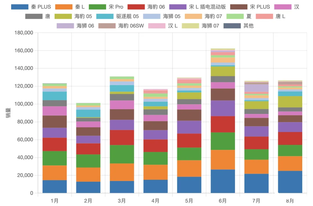 ◎ 海豹 05 插混在 5 月后持续放量,8 月突破 1.2 万台,海狮 06 插混上市即在 8 月贡献 8500 台。