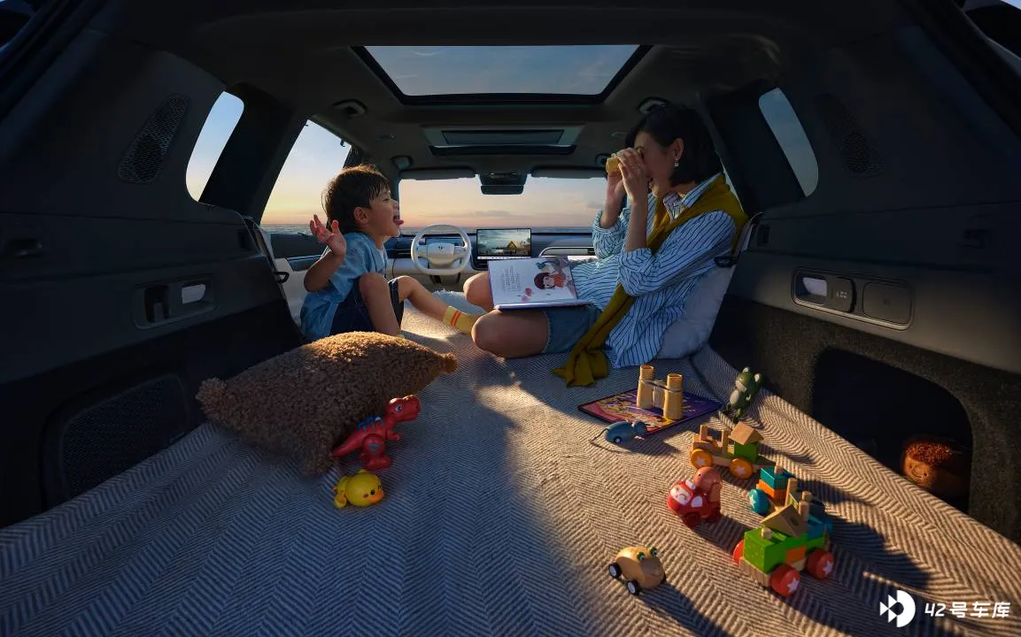 新车在空间设计上具有创新性,车长超过 5 米,轴距超过 3 米,提供同级最大的后排腿部空间。二排电动座椅设计使后排可变为 1.5 米的横向单人床或 2.4 米的双人床。车内有 22 处储物空间和超 1.8 立方米的后备厢容积,适合露营、钓鱼等活动,并配备双全景天幕、智能冰箱和 220V 电源接口。车内还配备 15.6 英寸智能娱乐屏和 18 个扬声器的音乐座舱。