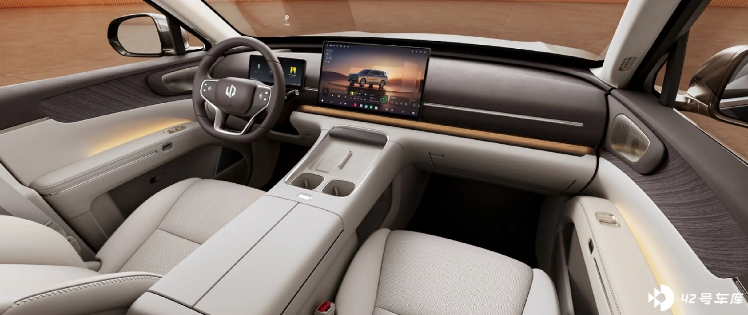 进入座舱,D19 的内饰并没有走个性鲜明的科技感或极简路线,而是选择了一种偏向居住空间的处理方式。