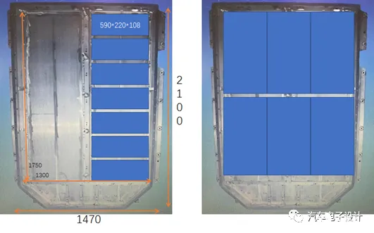 备注:如果一个大模组用 220 mm 的宽度的 590 电芯来做,模组的宽度会达到 450 mm,三个累加起来 1250,这个空间太紧凑了