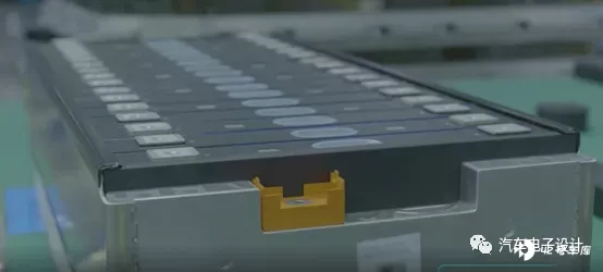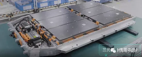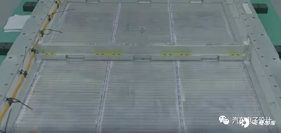 这是埃安宣传的模组形式,更像是一个 16 个电芯的 590 模组,这个和之前 Aion V 系列的 2P8S 的模组规格一致。在这个模组里面,把之前的口琴管的水冷板放弃掉了,集成在模组里面。