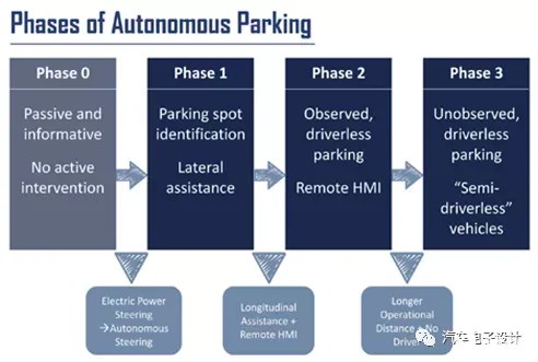 实际上,随着智能化的发展,预计 3-5 年低速自主泊车是每个车企努力的方向,目前的自动泊车是在第一阶段和第二阶段。