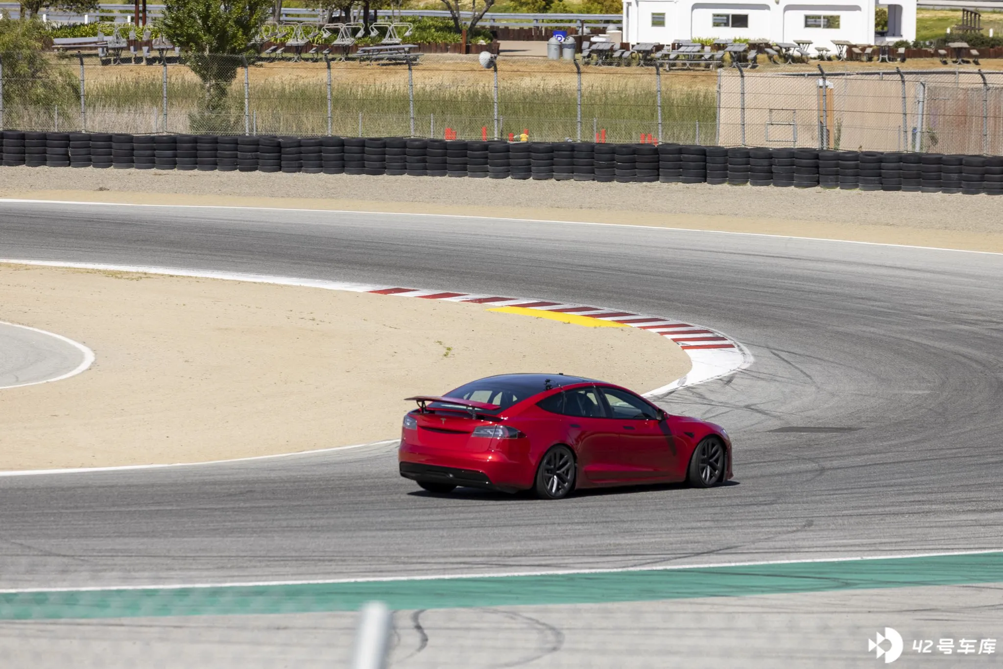 5 月 15 日,推特网友 klwtts 拍到了正在拉古纳-塞卡赛道(Weathertech Raceway Laguna Seca)做测试的 Model S Plaid 原型车。