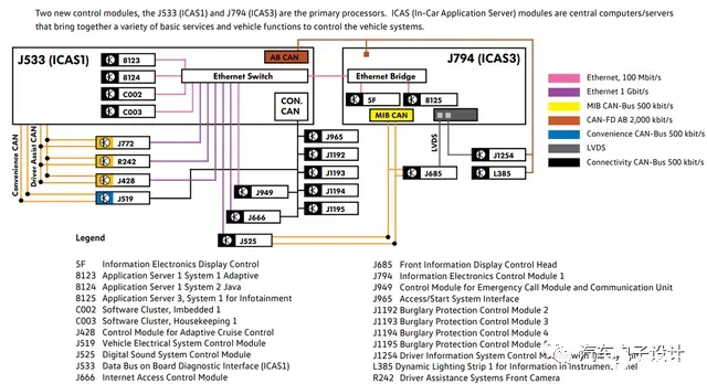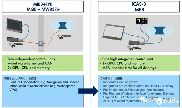 图 5 MEB 和 MIB3 可能只有 ICAS3 直接输出给液晶屏的差异