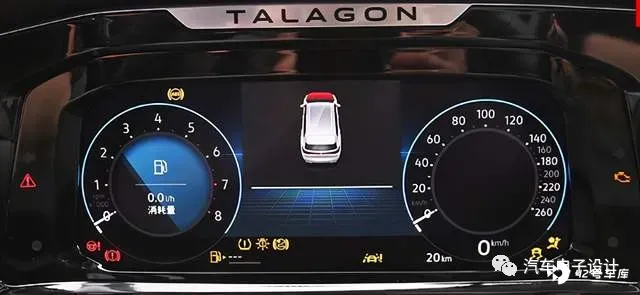 这里最先挑战人的还是这个 5.3 寸悬浮式液晶仪表盘,由于整体 MEB 的设计都是极简风格,这个 UI 的布置和信息的显示就显得特别简单。如下图所示,ICAS3 的 LVDS 直接驱动这个模块,而且显示的信息信息包括里程、车速和挡位。