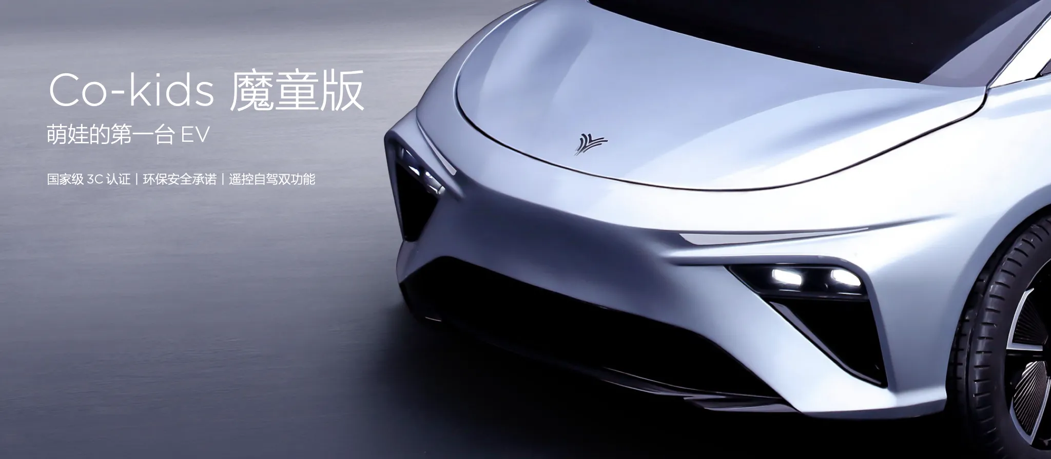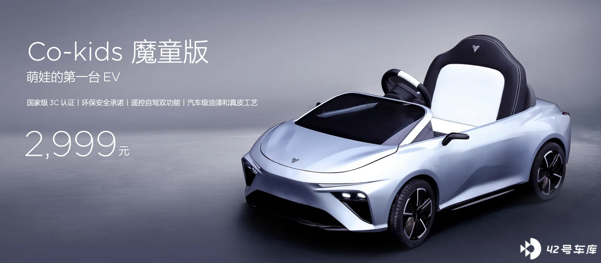 - 儿童玩具电动车——Co-kids 魔童版本。支持遥控和自驾,拥有汽车车漆和真皮座椅。作为「萌娃的第一台 EV」这台玩具车售价 2,999 元,续航并没有公布。供应商知道消息后纷纷订购,致使这台玩具车已经拥有了超过了 5 万台订单。