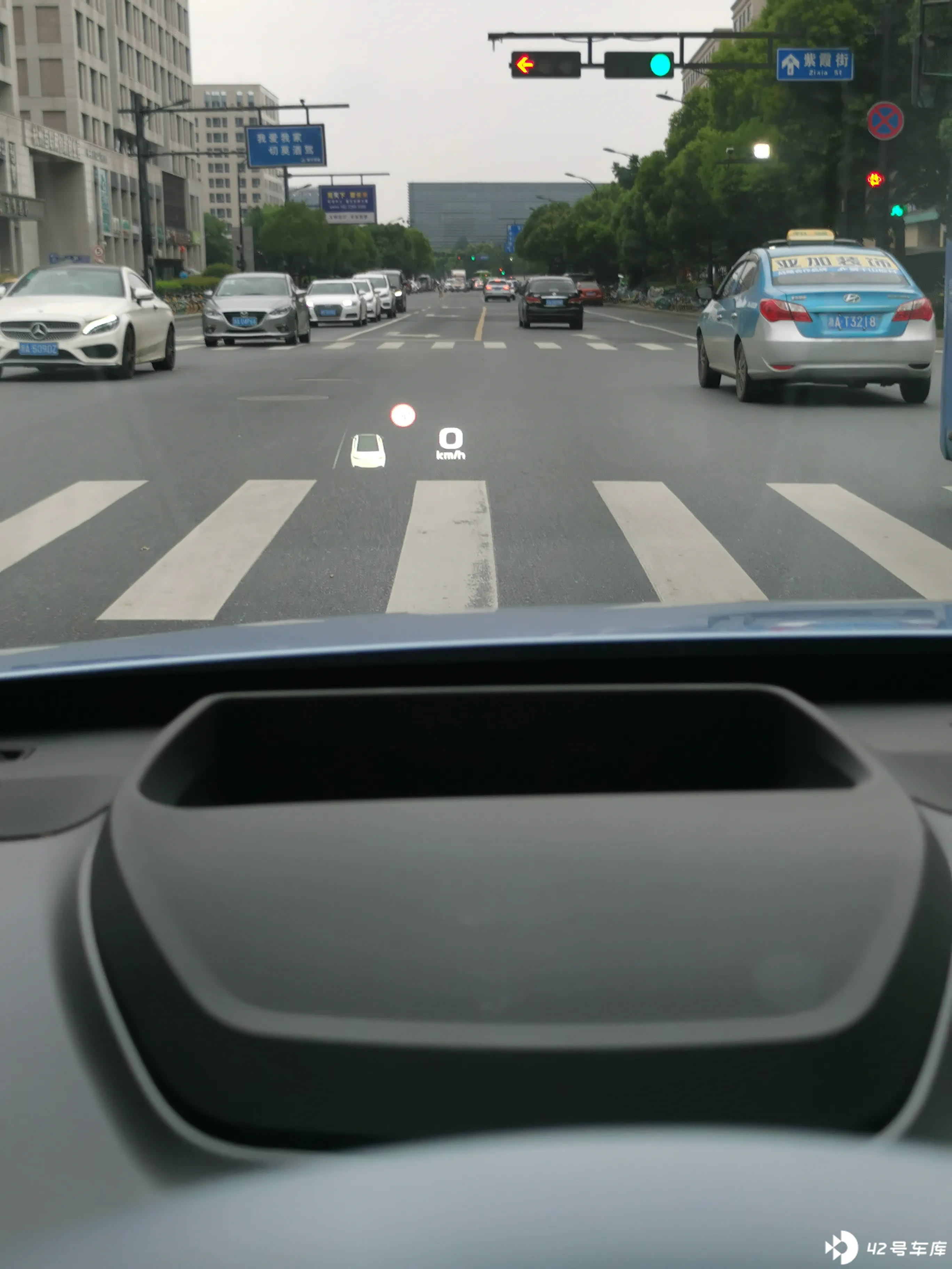 我这辆车是有抬头显示(HUB)的,只有司机能看清,显示了行车速度和一些相关信息。