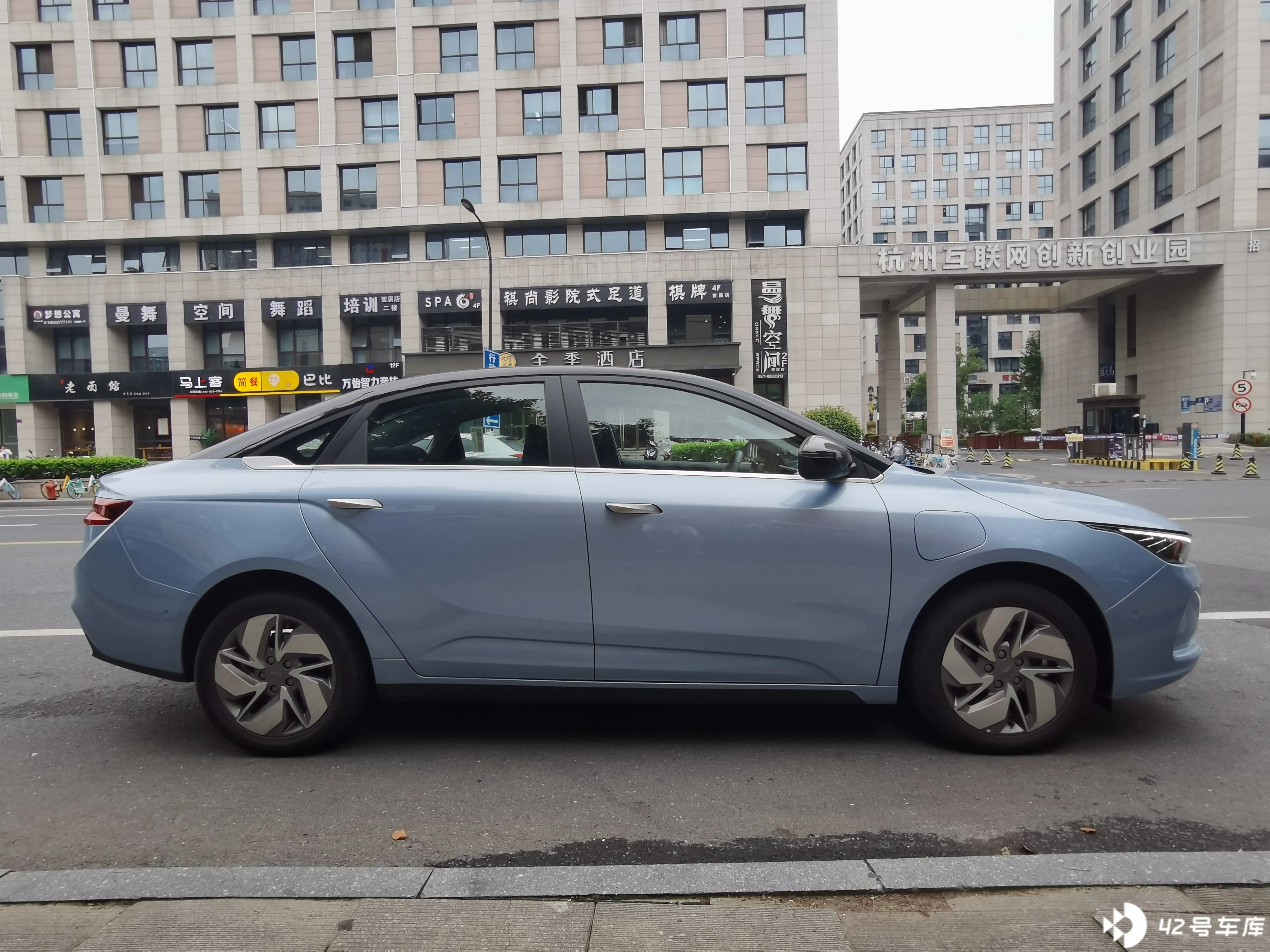 感谢 42 号车库的邀请,有幸试驾了几何 A Pro,拿走的是一辆蓝色车身 + 黑色撞顶的车车,外观颜值能打,路边停车随手一拍还是很美的。作为一款 10 + 万的纯电轿车,几何 A Pro 相比几何 A,价格更低续航更长动力更强了,还算是比较有竞争力的纯电入门款。