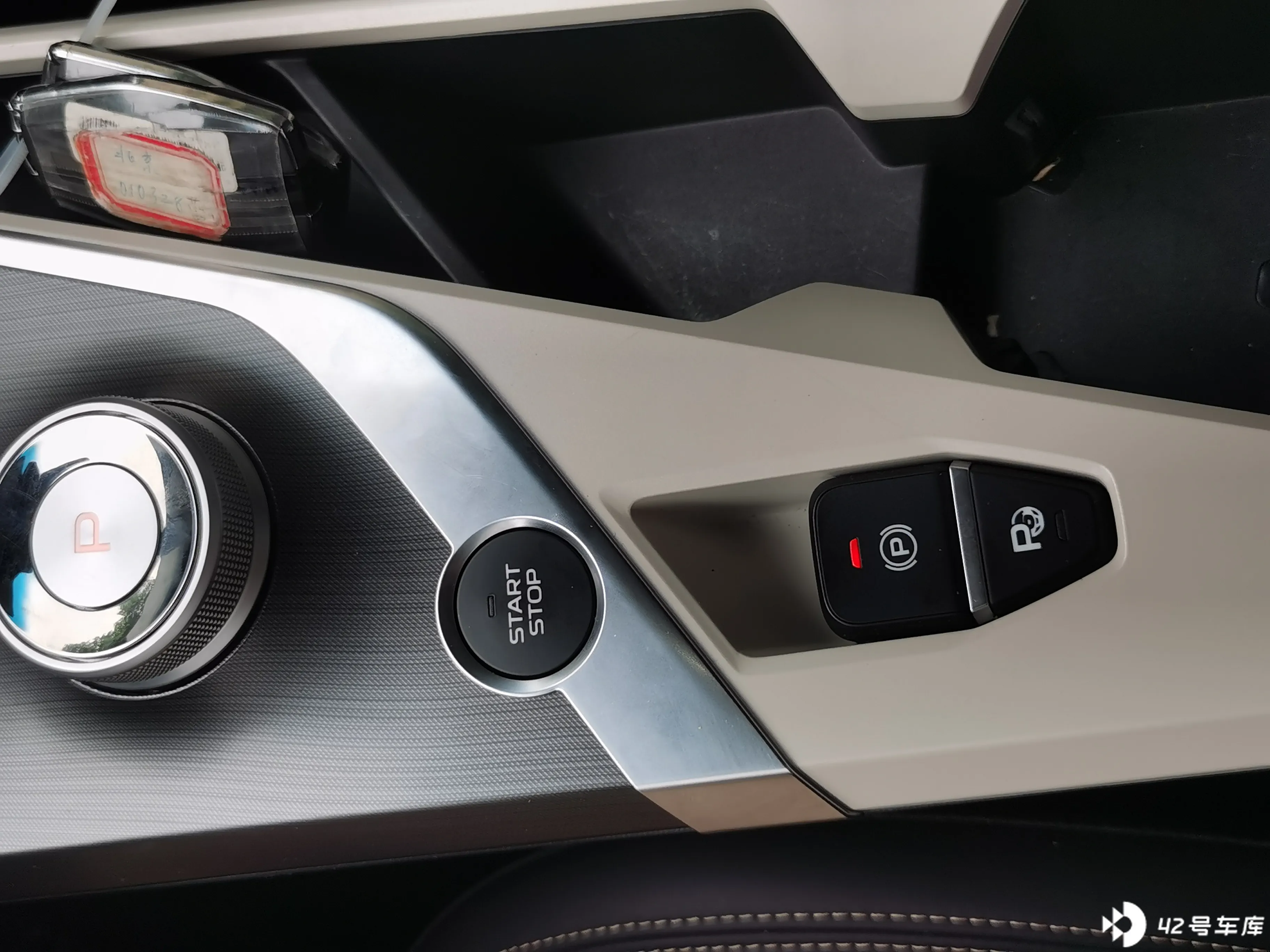 后面的按钮是开关、驻车模式、自动泊车。