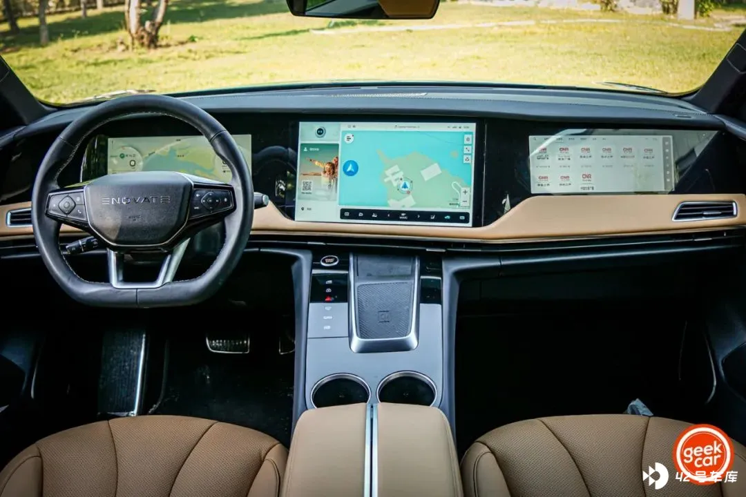 智能化,是我们作为汽车科技媒体必须要关注的点。从这台车的智能座舱和智能驾驶的交互设计上,能够看出来,天际 ME7 的产品经理可能从特斯拉身上「借鉴」了不少。