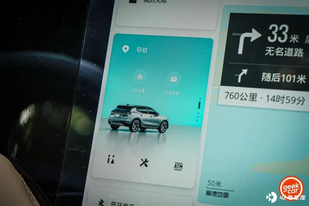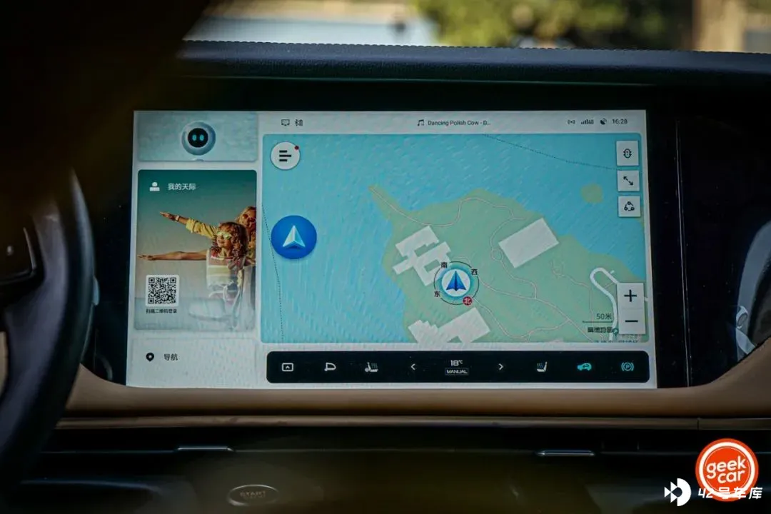 中控屏也做了一个「以驾驶员为中心」的偏左设计,更利于行车过程中驾驶员对导航等应用的观察。