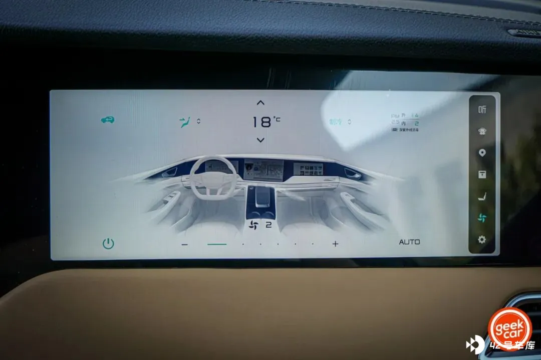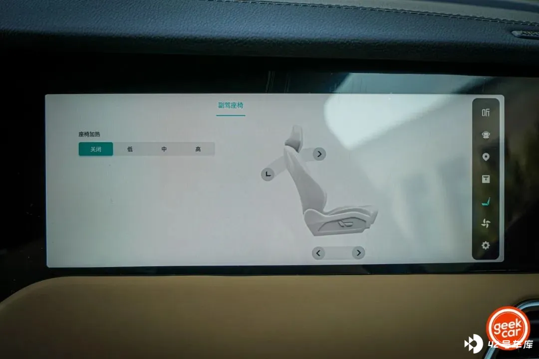 天际 ME7 的副驾带有一块 12.3 英寸的副驾娱乐屏,可以控制空调、座椅,还可以收听电台、音乐以及观看爱奇艺视频。
