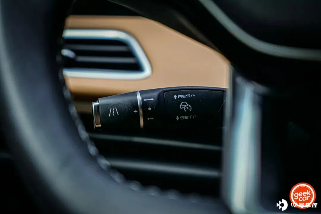 但是,辅助驾驶的控制拨杆放置在了方向盘转向柱左侧,正好会被方向盘挡住。所以,你需要记住拨杆的每个功能该如何操作,才会「熟能生巧」。就像玩游戏的时候,我们可以不看手柄轻松的打出「上上下下左右左右 BABA」……