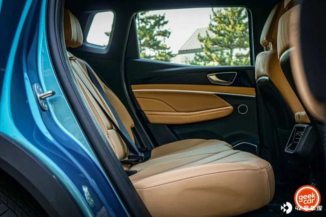 这里要夸奖一下后排的乘坐表现,后排座椅的椅背角度很大,所以后排乘坐时头部空间表现很好,而且坐姿呈现一个半躺的状态,长时间乘坐也不会有不适的感觉。
