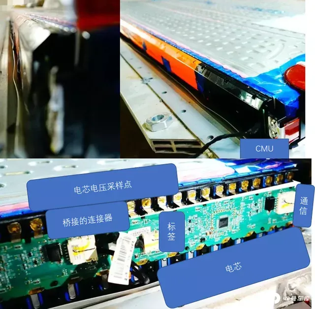 (1)从整体的基本线路连接来看,刀片电池系统设计的出发点,是在电芯层面提高集成效率,也正是这样,比亚迪似乎把 CMU 这个部件当导线来用,如下图所示。