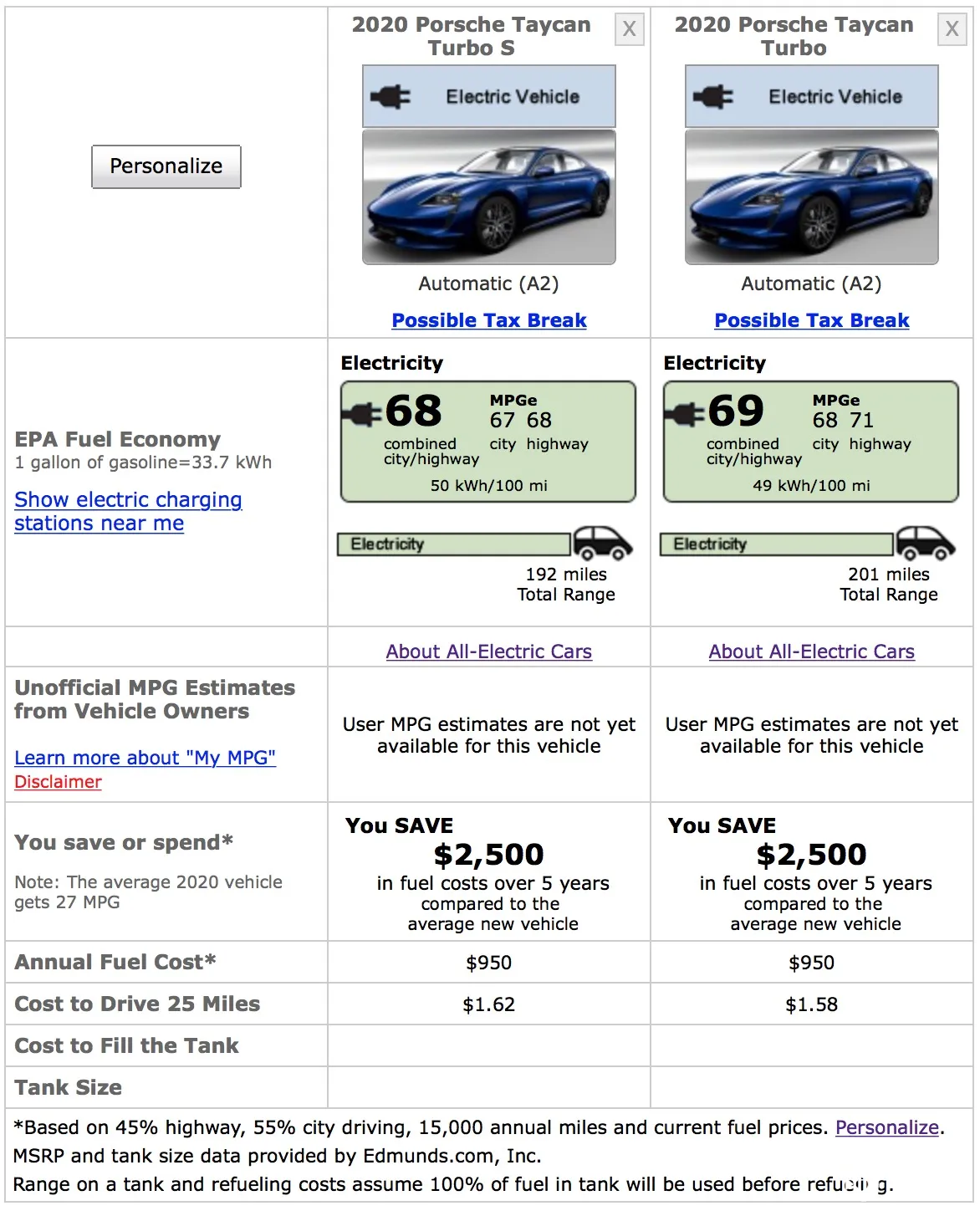 两台车的综合经济效率基本都在 70 MPGe(每加仑汽油当量的英里数,数值越大越好)左右,在电动车中只是比最差的保时捷 Taycan Turbo S 的 68 MPGe 好一点,甚至是同级别汽油皮卡、SUV 的 3 倍以上。
