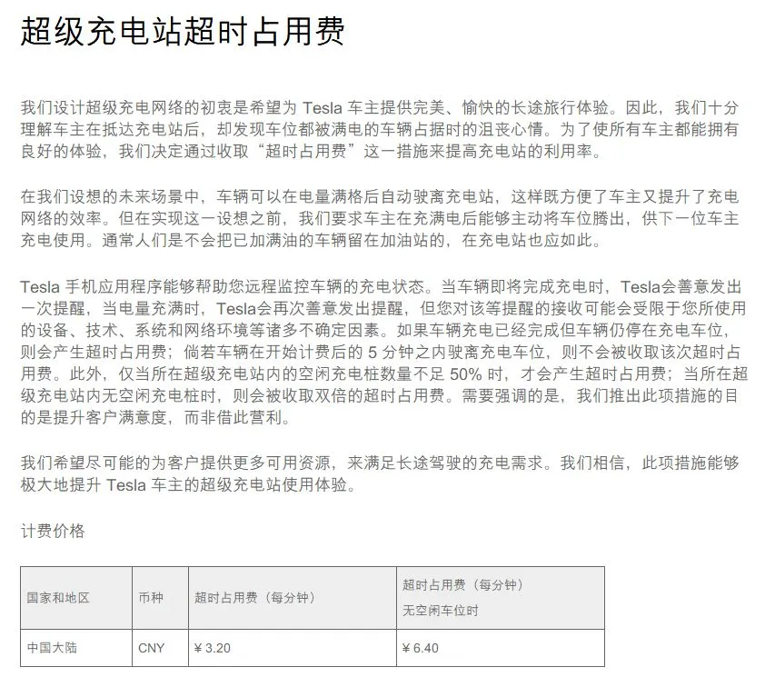 其次为了防止其他车型占位,部分超充站甚至安装了地锁或者有人员监管,此外特斯拉还设置了超充超时占用费,即充到目标电量后,5 分钟内需要将车辆驶离超充车位,极大程度的提高了超充桩的利用率。