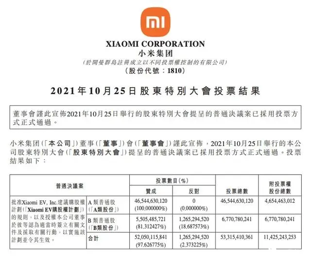 同时小米的影响力也必然吸引很多技术大咖的加入,雷军亲自下场、相比传统车企薪酬翻倍、在资本市场上小米汽车没准还会独立上市,都成为了小米汽车吸引人才的加分项。小米集团也在 10 月 25 日举行股东特别大会,批准采纳了 Xiaomi EV 的股权激励计划,计划授权上限为 10 亿股,占已发行股份总数的 10%。
