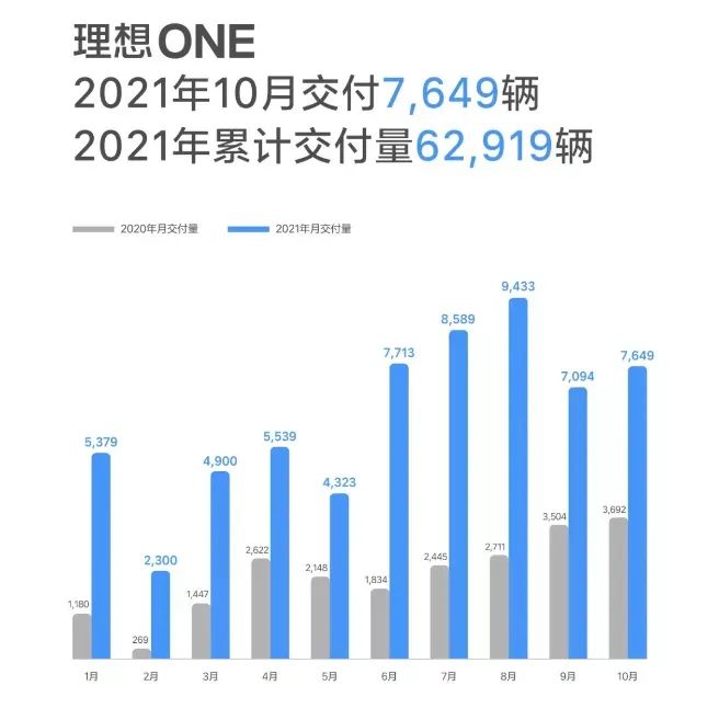 2021 年,蔚小理的年交付量基本都可以达到近 10 万辆的水平。在接下来的几年内,随着新能源汽车的发展,交付量必然是阶梯式增长。例如,理想就设定了在 2025 年销售 160 万辆的目标。