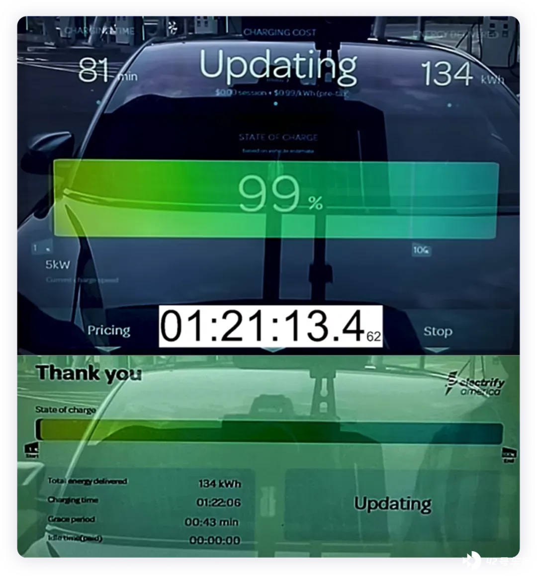 有关 Electrify America 在 0-100% 充电范围内收取 134 kWh 的电费,这个事实让很多消费者感到困惑。我的理解是,在整个充电的过程中,16kWh 的能量,到底损耗在哪里呢?在下面这几个环节: