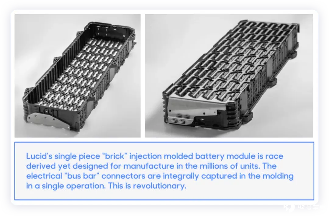 Lucid 模块和电池组的构造方式,在之前的一次发布会里面做了交代,我这边当时没有跟进。