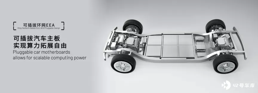 超级底盘,或者说是滑板底盘,目的是解耦上下车体:线控底盘,打破了传统转向、制动、悬架对车身的束缚,可更灵活的布置车内空间;可插拔环网电子电器架构是支撑上下分体式开发的关键因素,通过标准化的硬件接口,让上车体的开发更加灵活;热管理系统底盘模块化集成化让上车体舱体布置更自由,同时还能拥有更多的前舱空间。