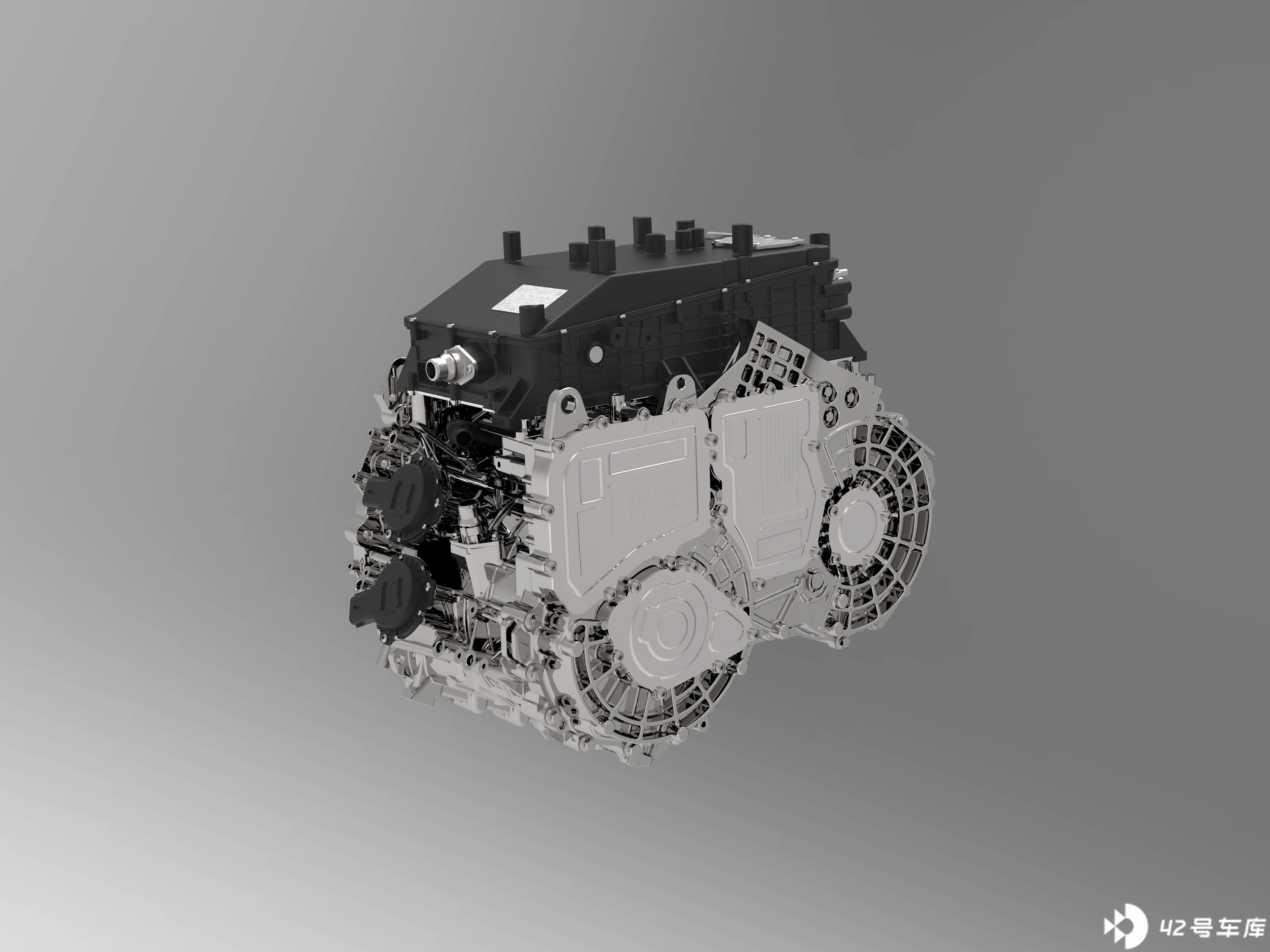 DHT 混动专用变速箱,采用两挡设计,由 GM/TM 双电机集成、整箱最高传动效率高达 98%。在系统馈电情况下,百公里油耗可以达到 5.5 L。