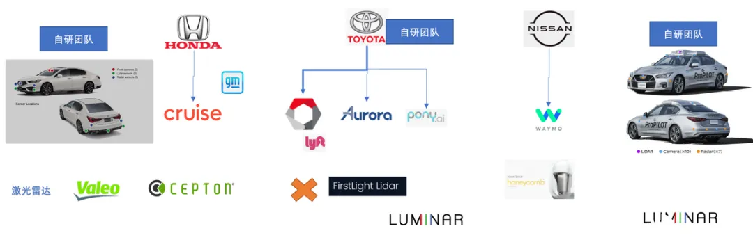 前几日日产汽车的下一大带有激光雷达的 Pro-Pilot 演示车辆在比较大范围内宣传,很有意思的事,和其他两家日企不一样,日产目前是围绕自己的 AD/ADAS 先进技术研发部在开发,是在原有的 Pro-Pilot 2.0 上通过加入 Luminar Lidar 传感器的方式迭代,结合日产的情况,我顺带着梳理三家日企不同的思路。