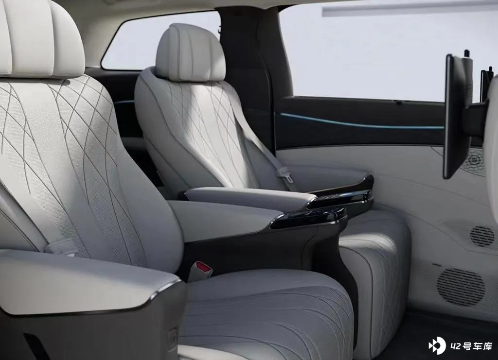 作为一台 MPV,D9 采用了 223 的座椅布局,其中第二排配备了两只带腿托的航空座椅,通风、加热、按摩、睡眠头枕一应俱全,配置上无可挑剔。